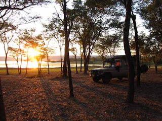 Ci fermiamo a dormire una notte lungo il lago in un campeggio del Parks Board Zimbabwano. Siamo comunque gli unici ospiti e gli elefanti vengono a brucare dagli alberi nelle vicinanze, mentre gli ippopotami passeggiano lungo le spiaggette.