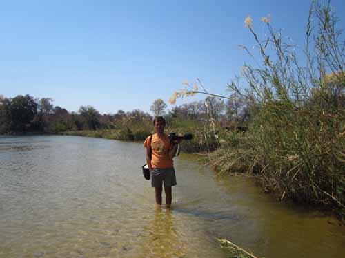 qui passiamo in gran velocità una parte del Chobe, ai lati della